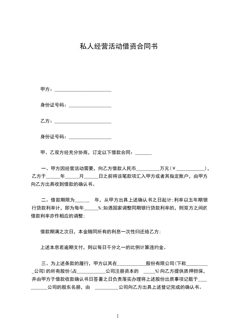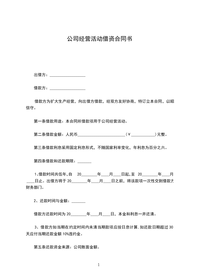 一、甲方因经营活动需要,向乙方借款人民币__________万元(¥____________),乙方于________年____月____日之前将该笔款项汇入甲方或者其指定账户,由甲方向乙方出具收到借款的确认书。