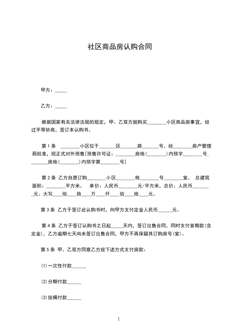 根据国家有关法律法规的规定,甲、乙双方就购买________小区商品房事宜,经过平等协商,签订本认购书。