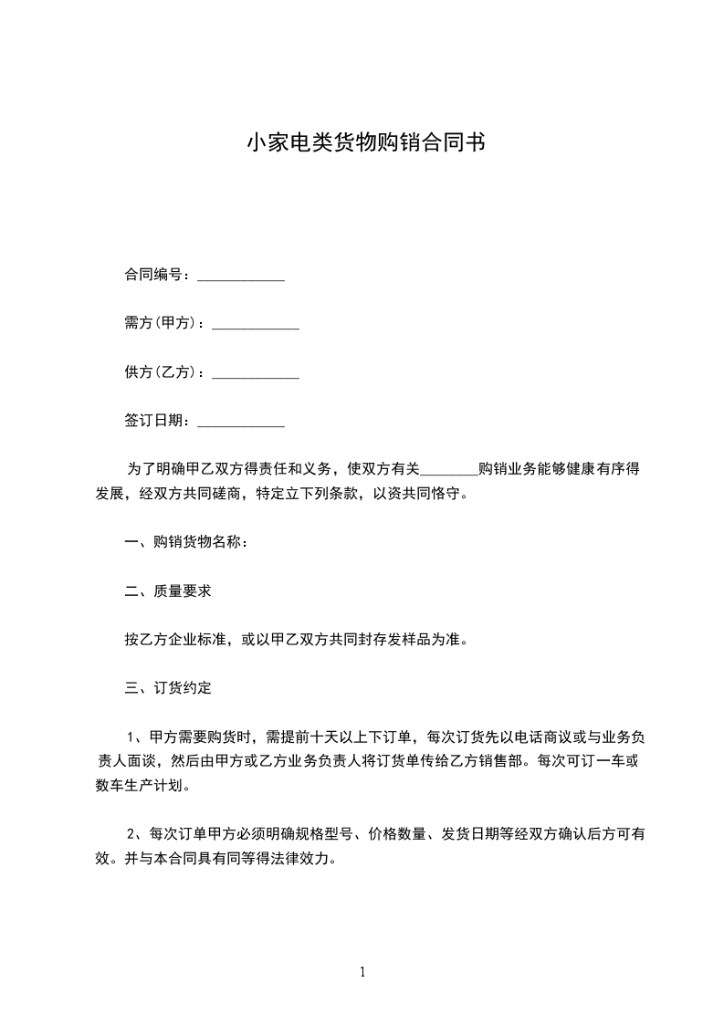 1、甲方需要购货时,需提前十天以上下订单,每次订货先以电话商议或与业务负责人面谈,然后由甲方或乙方业务负责人将订货单传给乙方销售部。每次可订一车或数车生产计划。