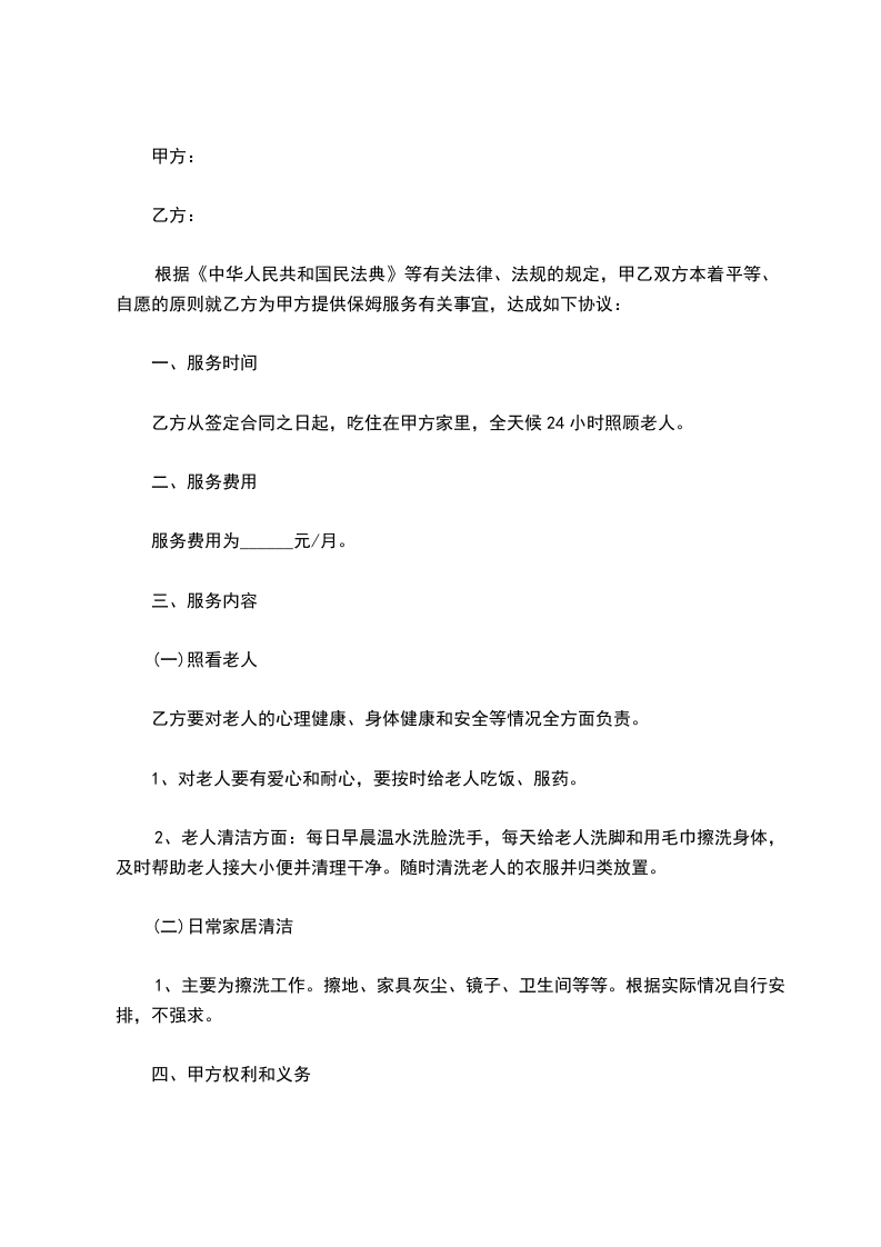 6、不得参与甲方家庭及邻纠纷,尊重甲方家的生活习惯,不得所服务对象。