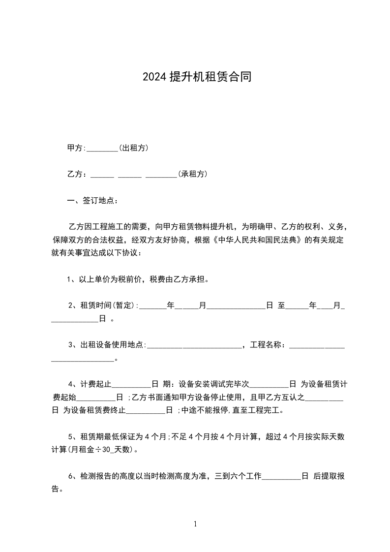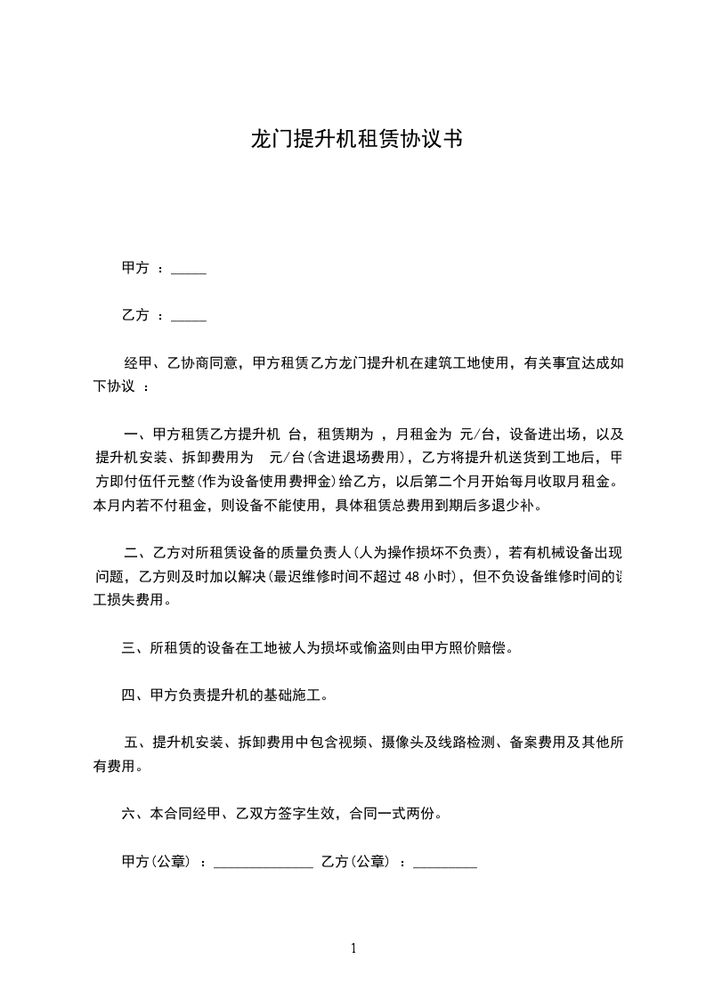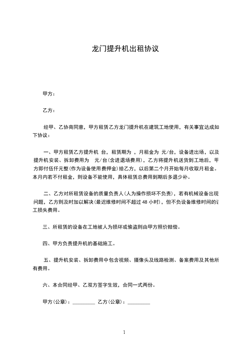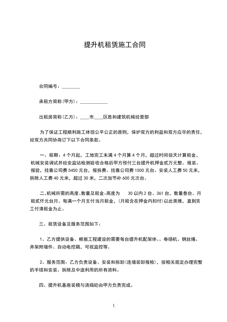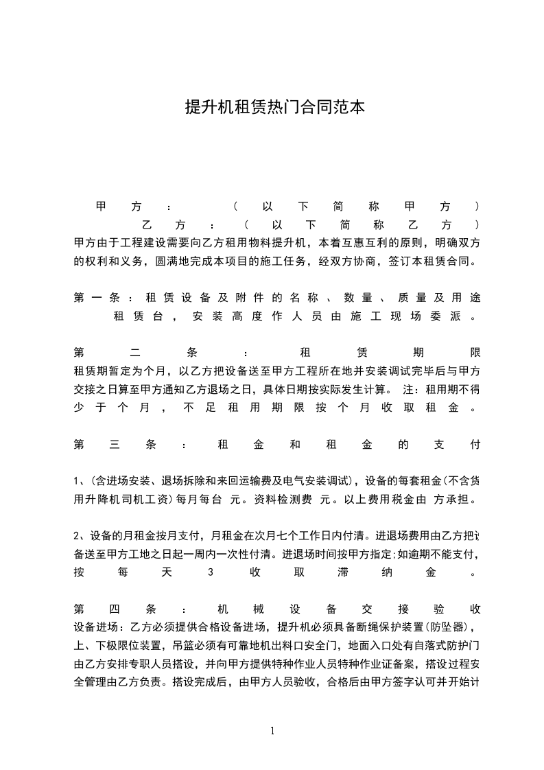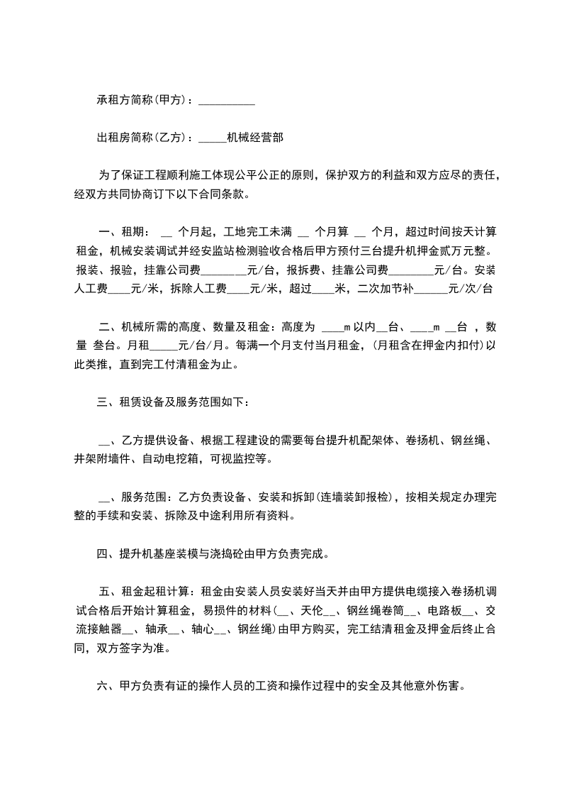 甲方由于工程建设需要向乙方租用物料提升机,本着互惠互利的原则,明确双方的权利和义务,圆满地完成本项目的施工任务,经双方协商,签订本租赁合同。