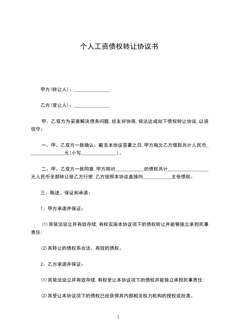 (其中:本金:_______元;利息:_______元)按双方协商的价格大写小写转让给乙方。