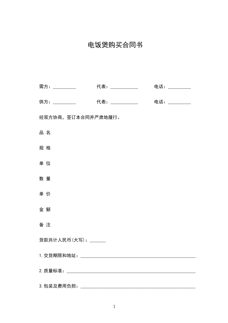 需方:__________ 代表:____________ 电话:__________