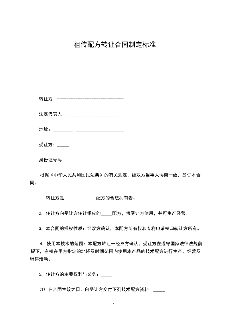 2. 转让方向受让方转让相应的_____配方,供受让方使用,并可生产经营。