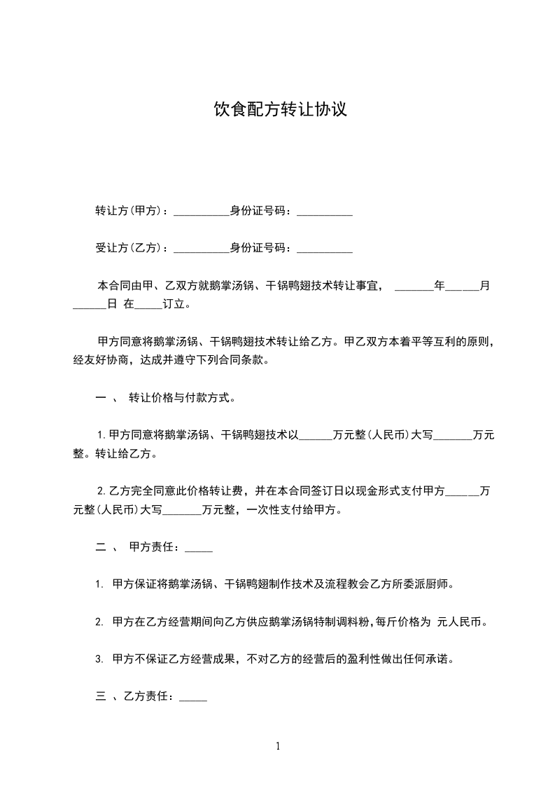 1) 合同生效后,并将相关配方移交给受让方之日内先向转让方支付转让费的______%,计人民币______________元整(¥_______元)。