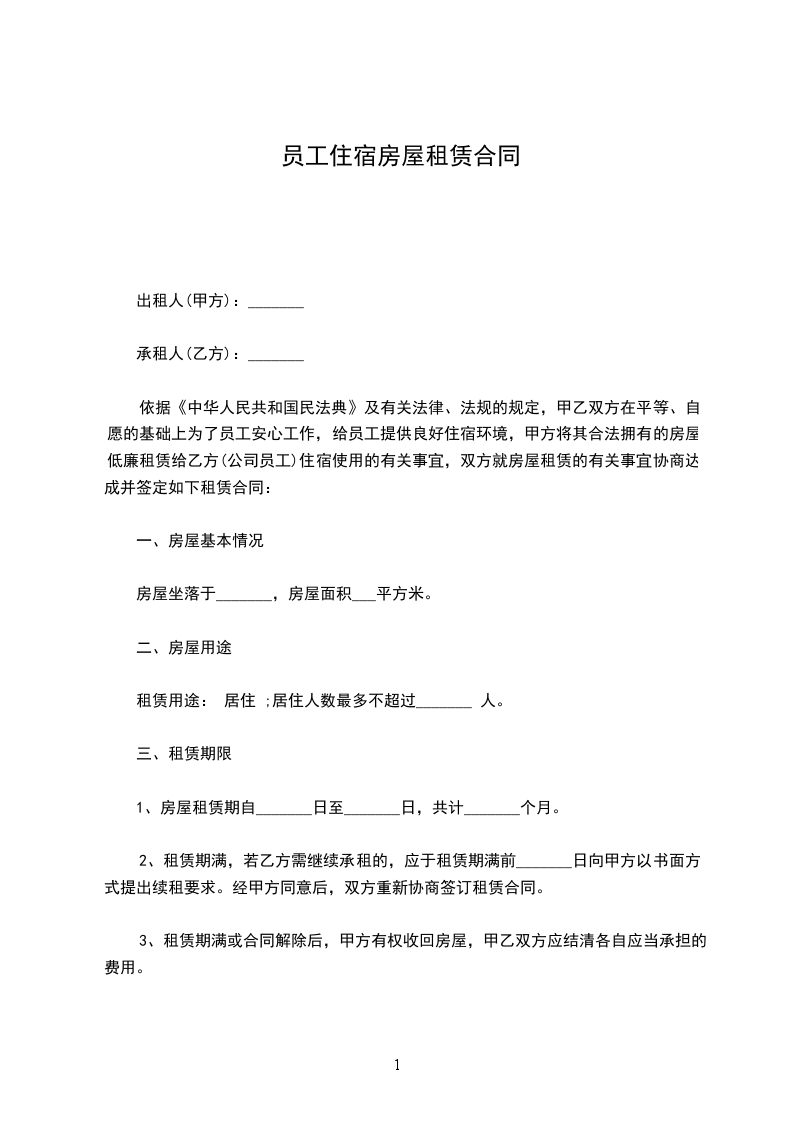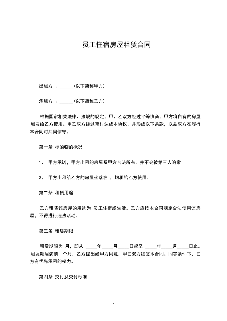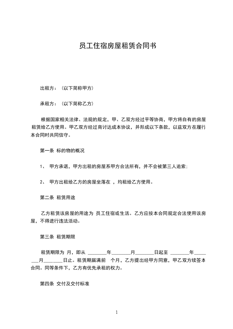 乙方为合法住宿之需要,就租用甲方房屋事宜,双方经充分协商,达成如下一致合同条款。