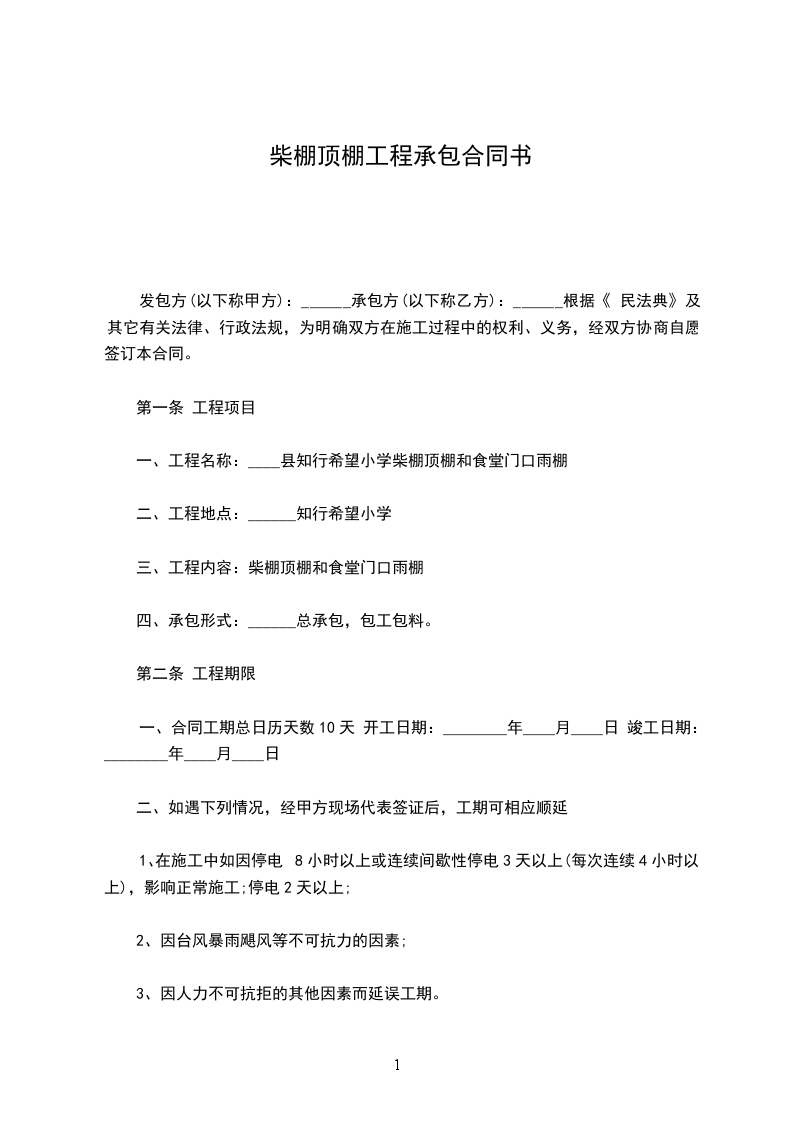 三、工程内容:柴棚顶棚和食堂门口雨棚