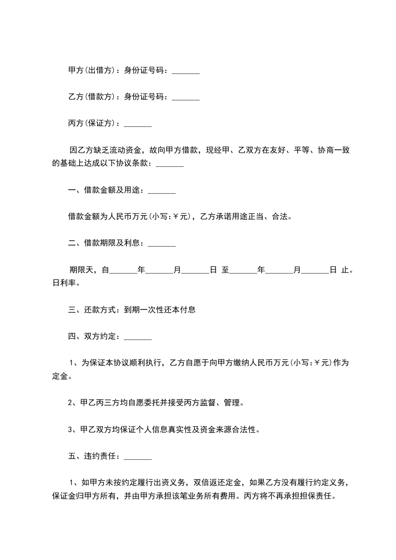 甲方(出借方):身份证号码:_______