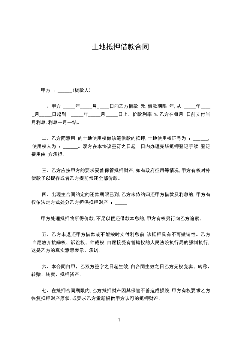 兹因土地抵押借款事宜,经双方同意订立各条款如下:_______
