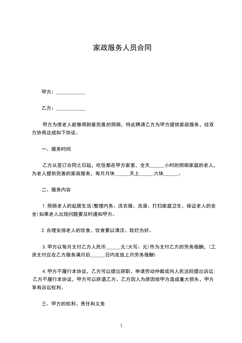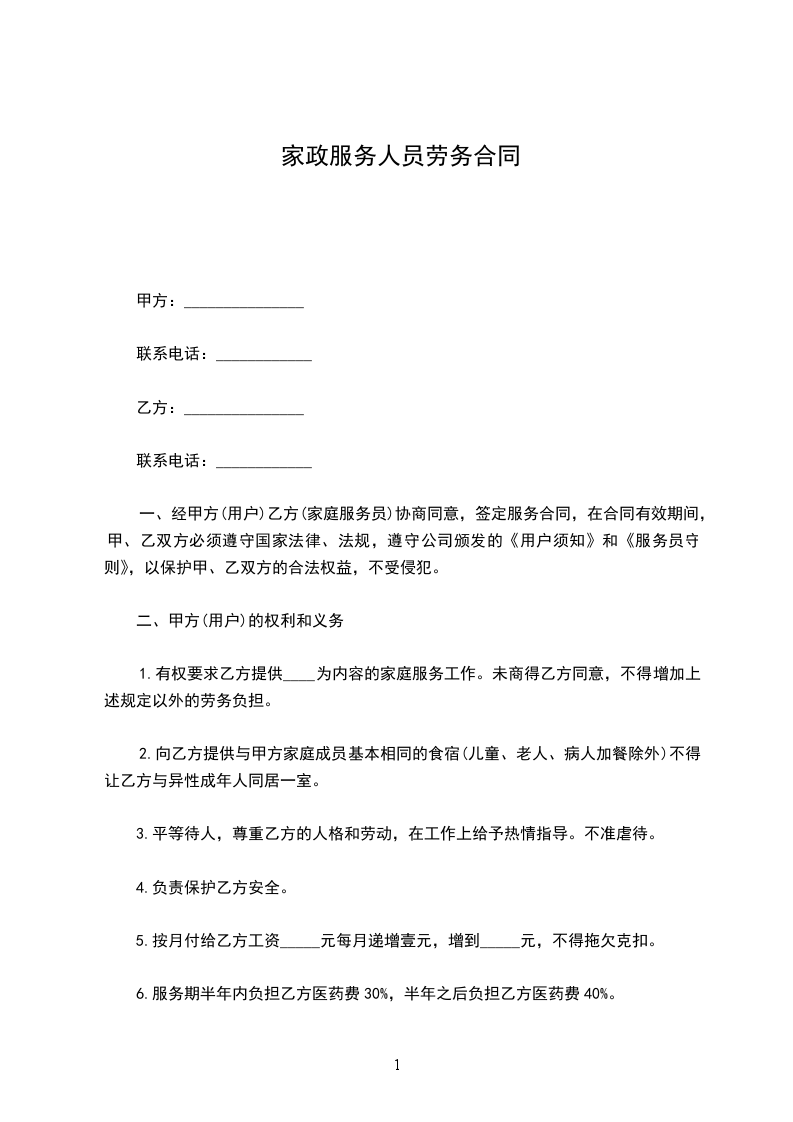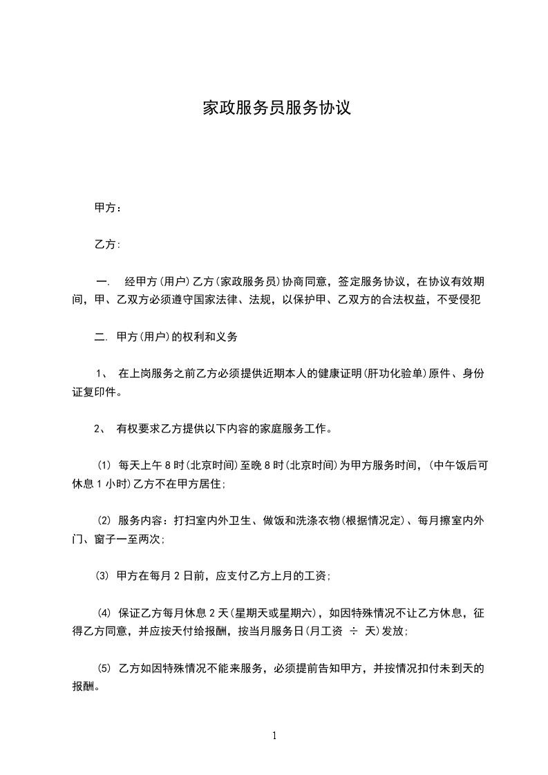 2.甲方不得随意擅自增加合同约定事项以外的工作。如需增加,应得到乙方家政员负责人的同意,并适当增加报酬。本合同自双方签字、甲方向乙方交纳约定款项后生效。本合同一式二份,甲乙双方各执一份。