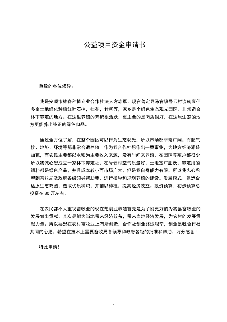 特此申请,望予批准!