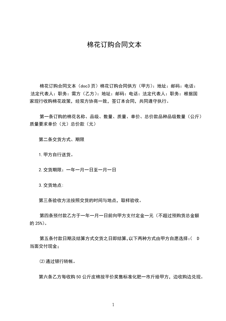 根据国家现行收购棉花政策,经双方协商一致,签订本合同,共同遵守执行。