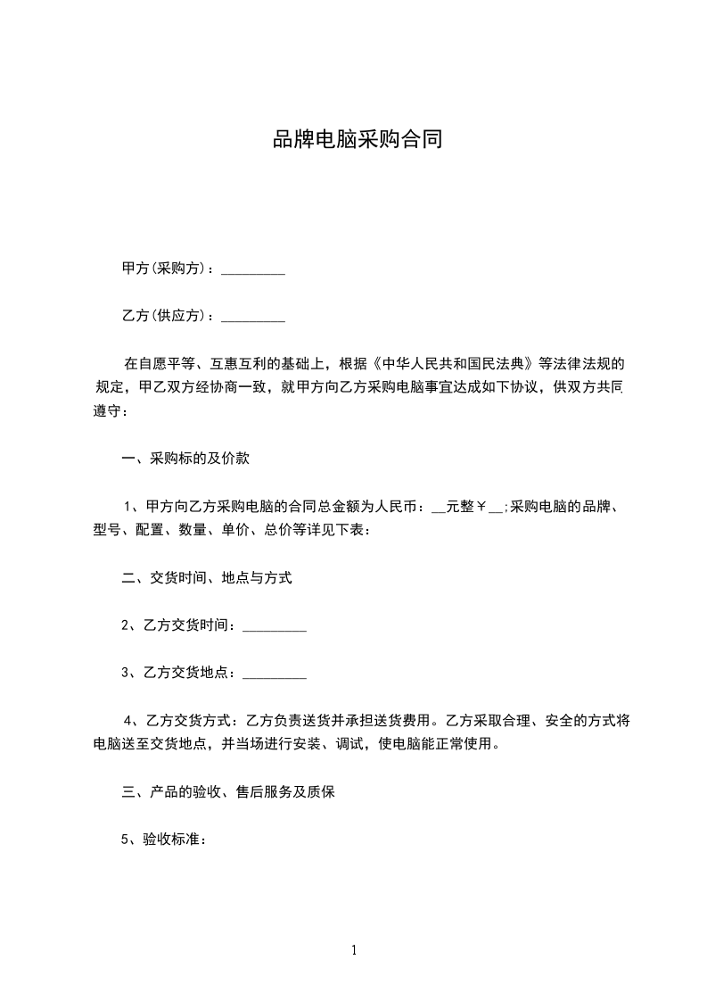 今甲方向乙方采购一批电脑,为友好合作,特定如下合同。