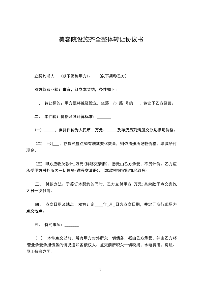 一、 转让标的:甲方愿将独资设立,坐落__市_路_号的___,转让予乙方经营。