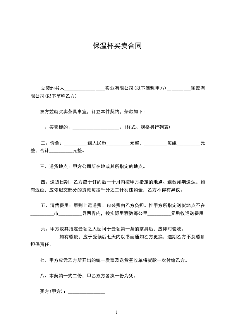 立契约书人_________________实业有限公司(以下简称甲方)__________陶瓷有限公司(以下简称乙方)