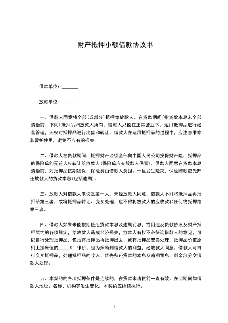 一、借款人同意将全部(或部分)抵押给放款人。在贷款期间(指贷款本息未全部清偿前,下同)抵押品归放款人所有,借款人只能在正常营业下,运用抵押品进行经营管理,无权对抵押品进行出售和转让。借款人在运用抵押品的过程中,应注意维修和爱护使用,避免不应有的损失。