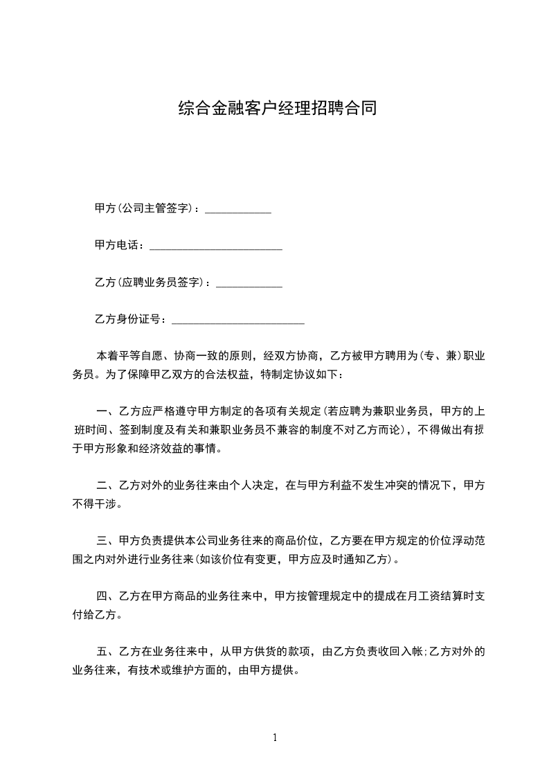 七、乙方每周向甲方汇报自己的业务开展情况,以作为甲方下一步市场业务开展的参考。 以上协议经双方签字后生效。