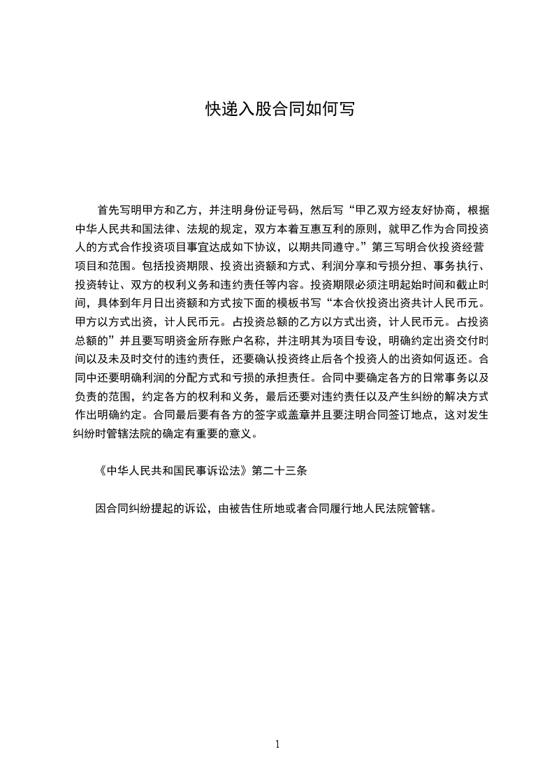 首先写明甲方和乙方,并注明身份证号码,然后写“甲乙双方经友好协商,根据中华人民共和国法律、法规的规定,双方本着互惠互利的原则,就甲乙作为合同投资人的方式合作投资项目事宜达成如下协议,以期共同遵守。”第三写明合伙投资经营项目和范围。包括投资期限、投资出资额和方式、利润分享和亏损分担、事务执行、投资转让、双方的权利义务和违约责任等内容。投资期限必须注明起始时间和截止时间,具体到年月日出资额和方式按下面的模板书写“本合伙投资出资共计人民币元。甲方以方式出资,计人民币元。占投资总额的乙方以方式出资,计人民币元。占投资总额的”并且要写明资金所存账户名称,并注明其为项目专设,明确约定出资交付时间以及未及时交付的违约责任,还要确认投资终止后各个投资人的出资如何返还。合同中还要明确利润的分配方式和亏损的承担责任。合同中要确定各方的日常事务以及负责的范围,约定各方的权利和义务,最后还要对违约责任以及产生纠纷的解决方式作出明确约定。合同最后要有各方的签字或盖章并且要注明合同签订地点,这对发生纠纷时管辖法院的确定有重要的意义。