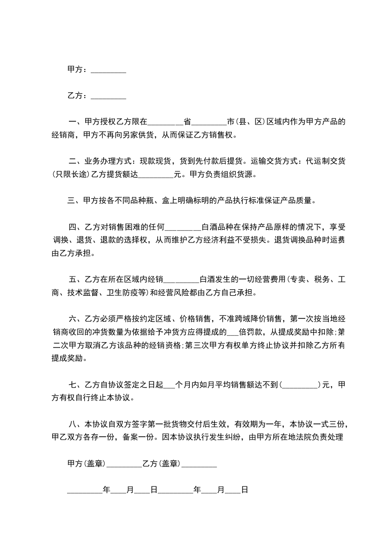 1、 乙方应配合甲方积极销售,把甲方所有的产品在销售处展示。