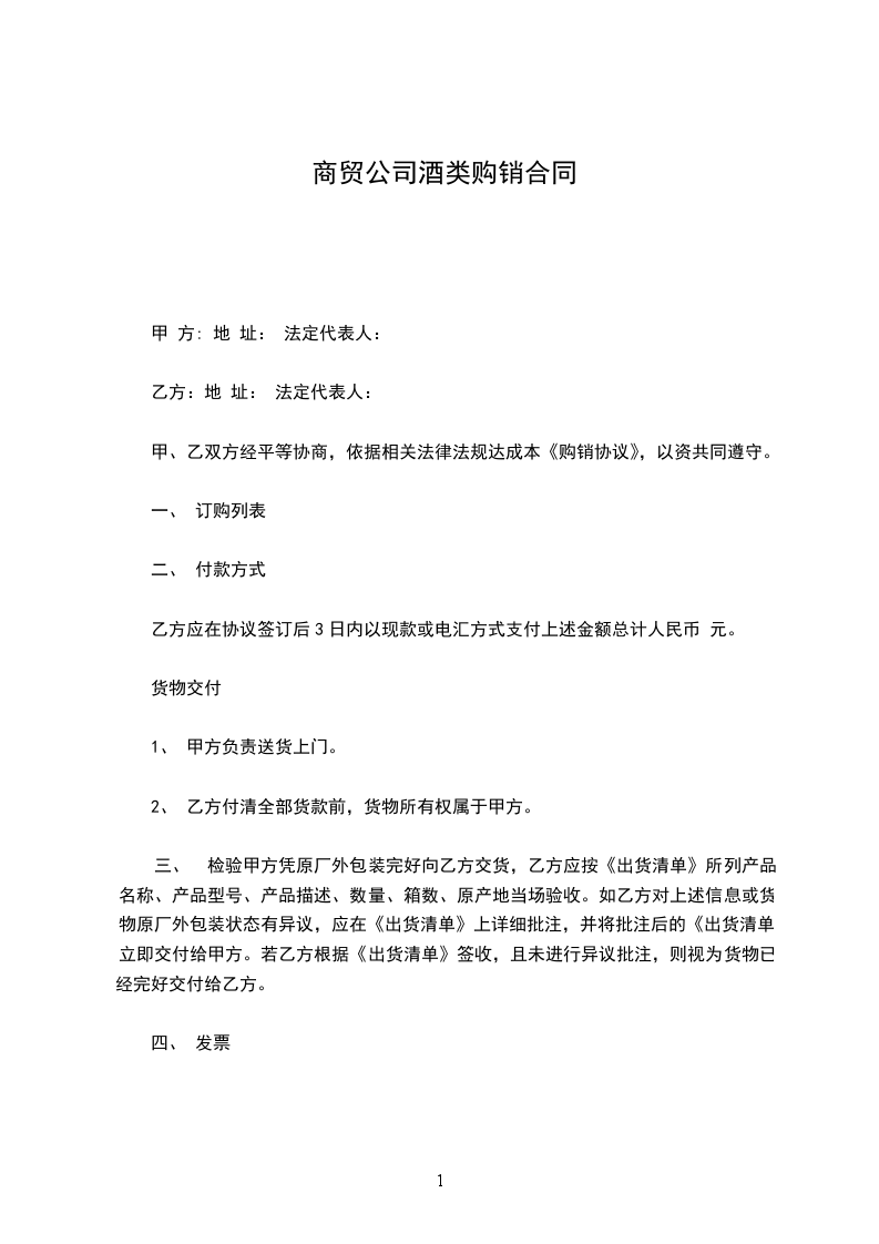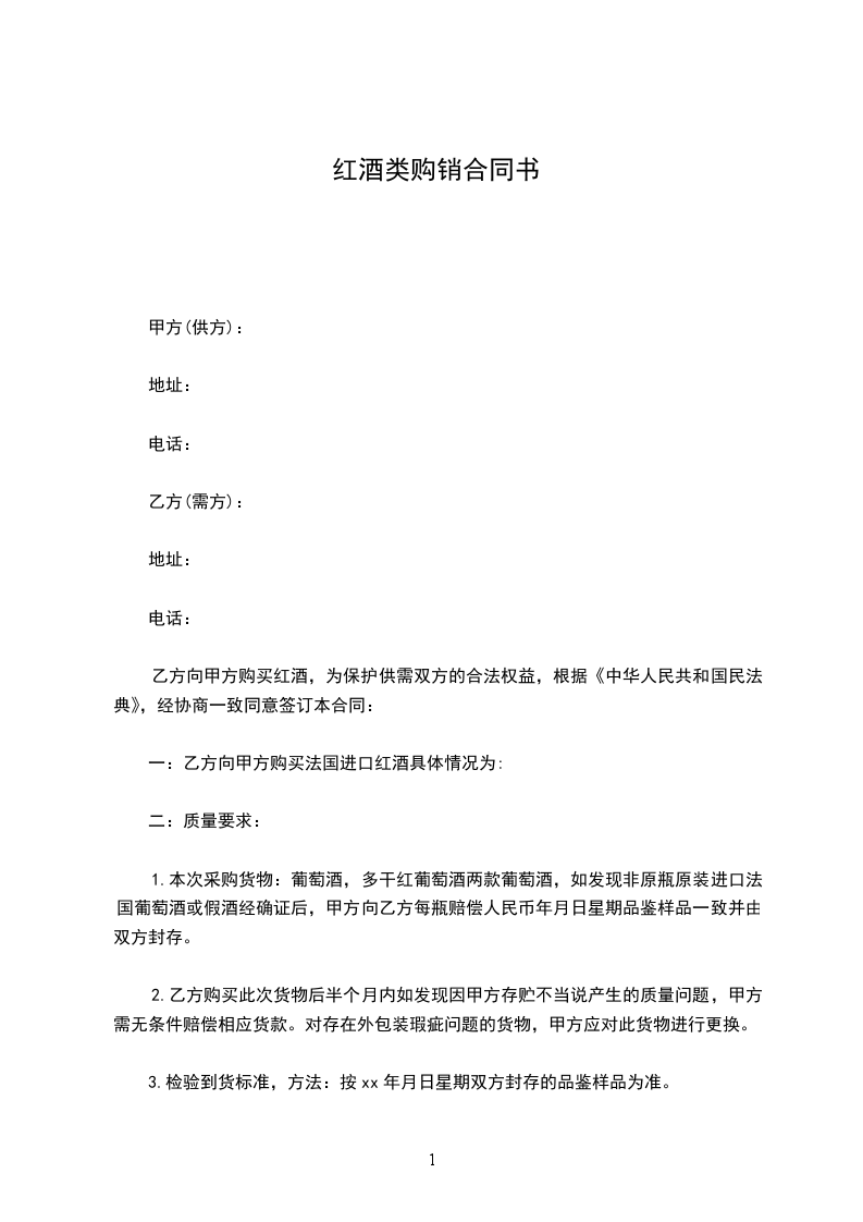 甲方(供货方): 乙方(购货方): 甲乙双方本着共同发展,诚实守信,互惠互利的原则,为了明确甲乙双方的责任和义务,经甲乙双方共同协商,达成如下协议: