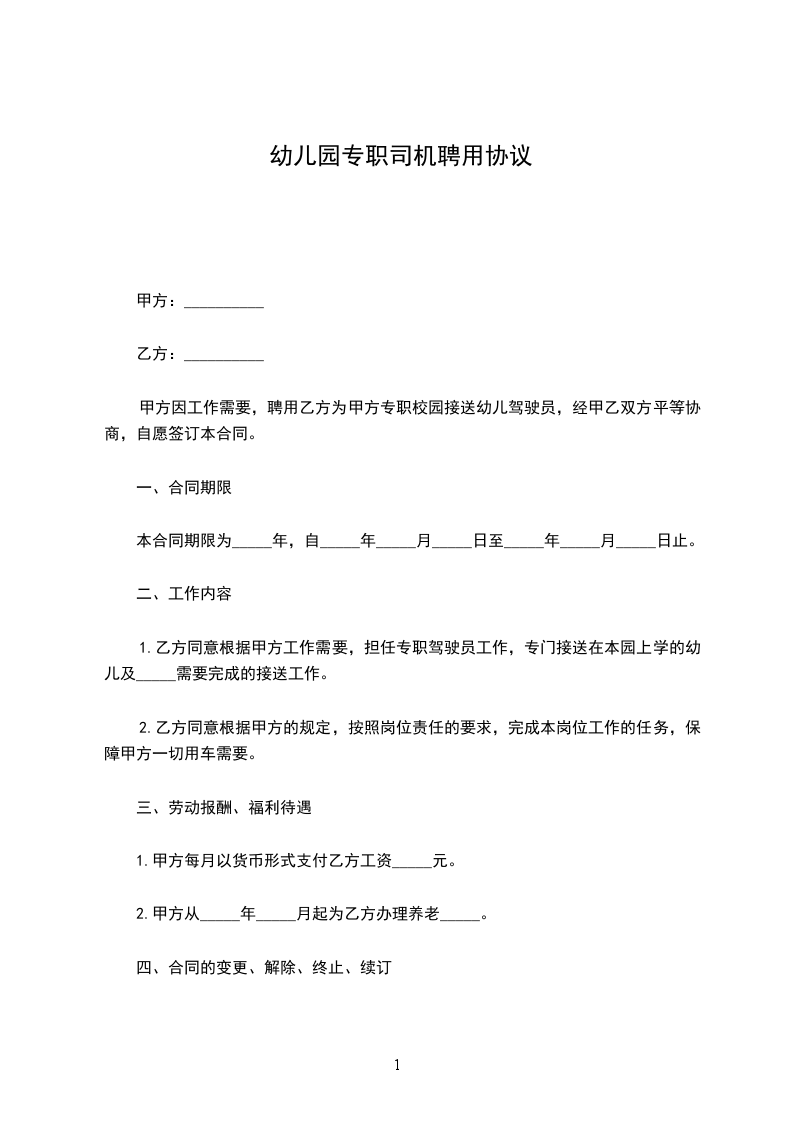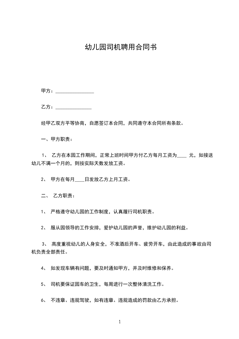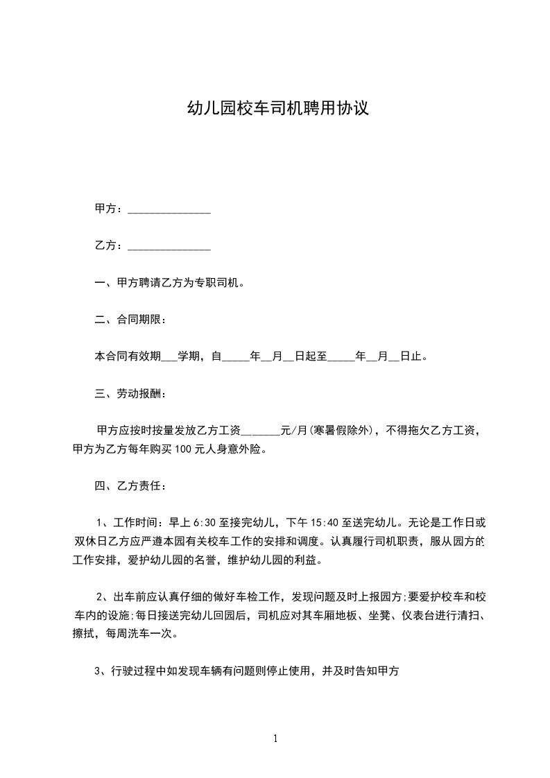 一、甲方聘请乙方为专职司机。
