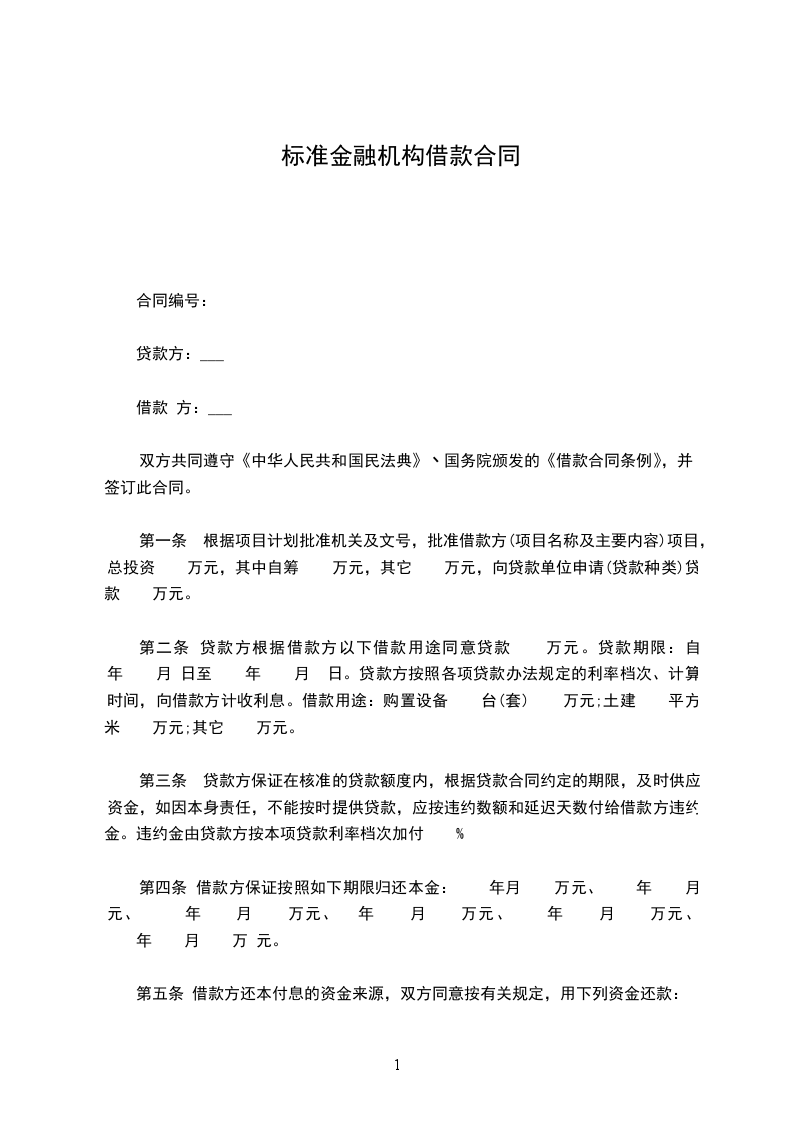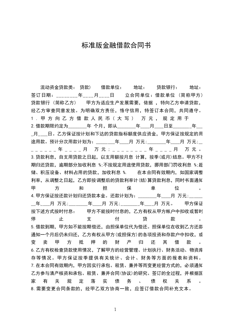 流动资金贷款类: 贷款) 借款单位: 地址: 贷款银行: 地址: 签订日期:________年____月____日 立合同单位:借款单位 (简称甲方) 贷款银行 (简称乙方) 甲方为适应生产发展需要,依据 ,特向乙方申请贷款,经乙方审查同意发放。为明确双方责任,恪守信用,特签订本合同,共同遵守。