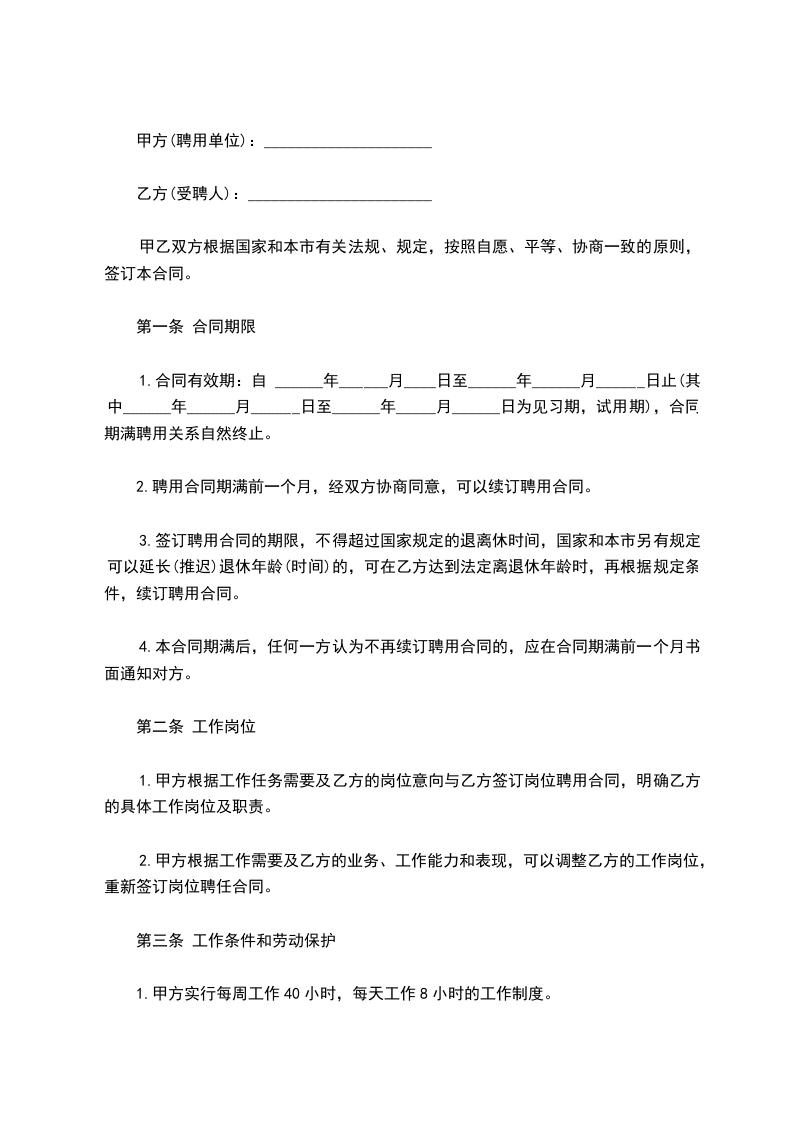 甲方聘用乙方为正式员工,双方经过平等协商,彼此同意约定下述条款以共同遵守。