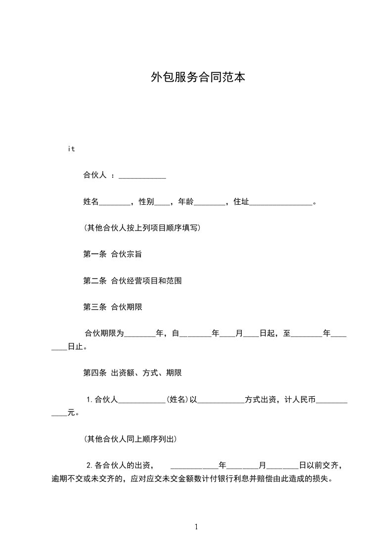 1.合伙人____________(姓名)以____________方式出资,计人民币____________元。