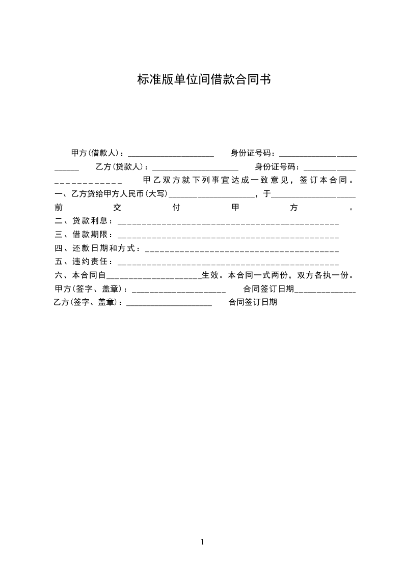 一、乙方贷给甲方人民币(大写)_____________________,于_____________________前交付甲方。