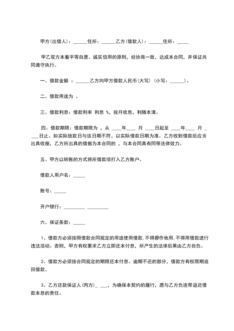 二、借款金额 借款方向贷款方借款人民币_____万元。