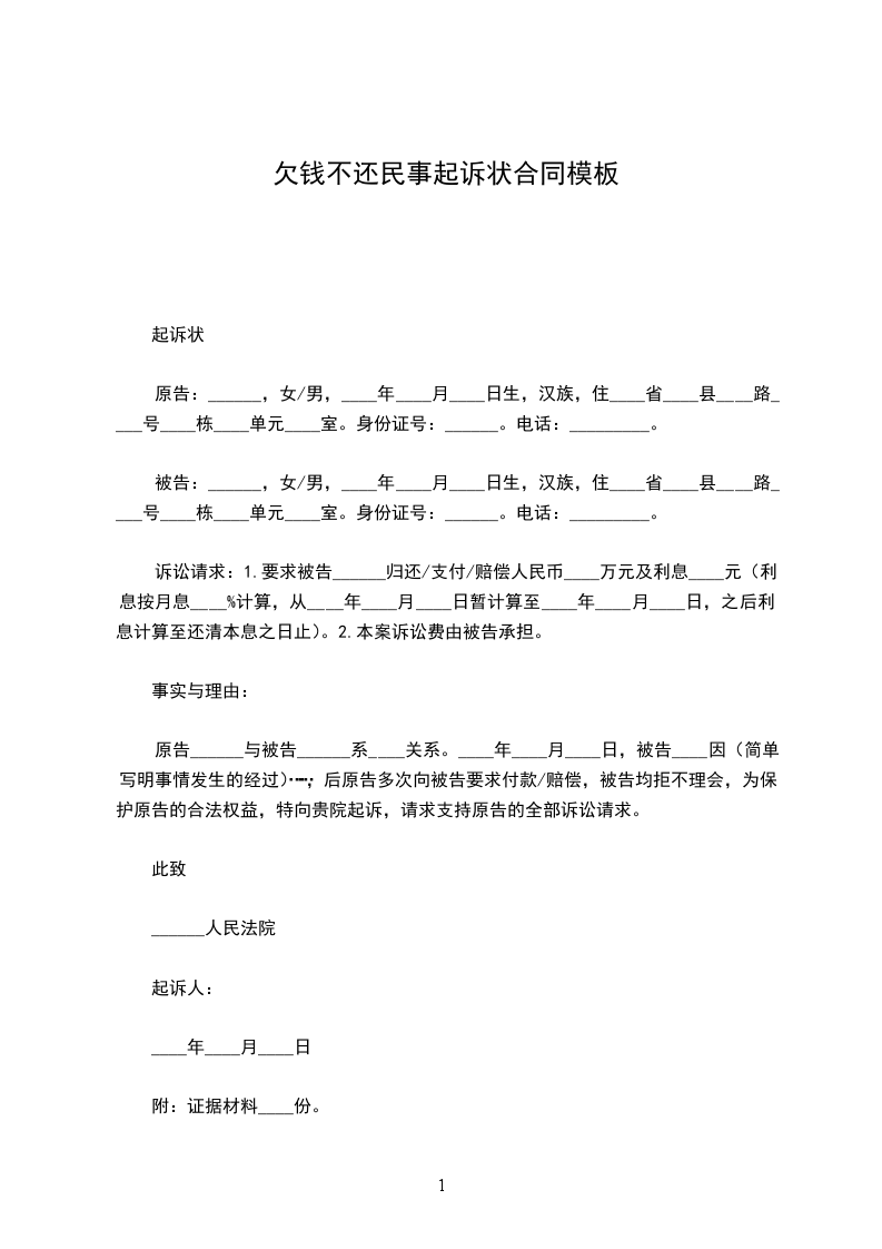 原告:______,女/男,____年____月____日生,汉族,住____省____县____路____号____栋____单元____室。身份证号:______。电话:_________。