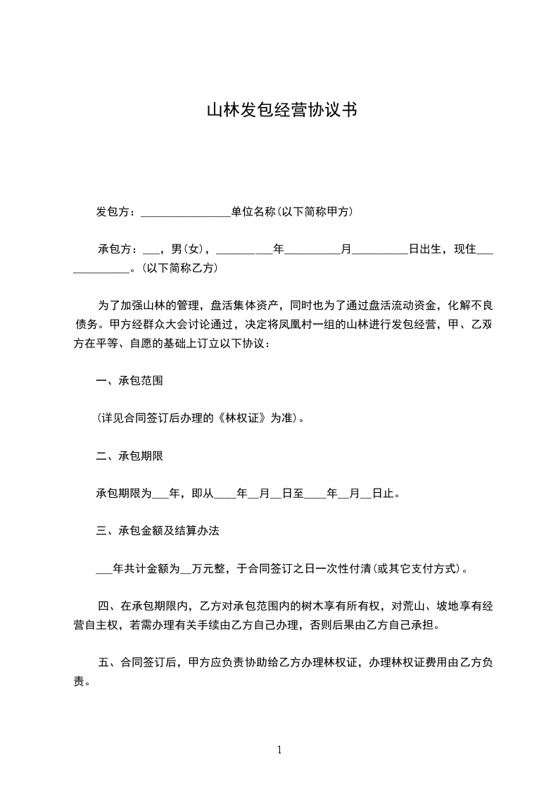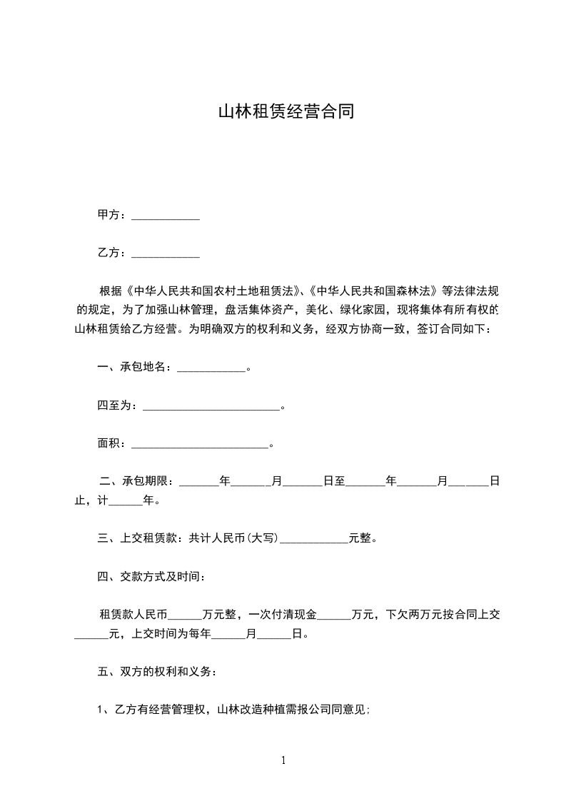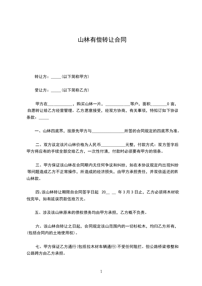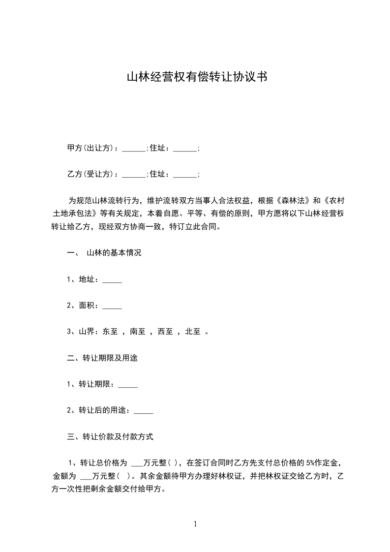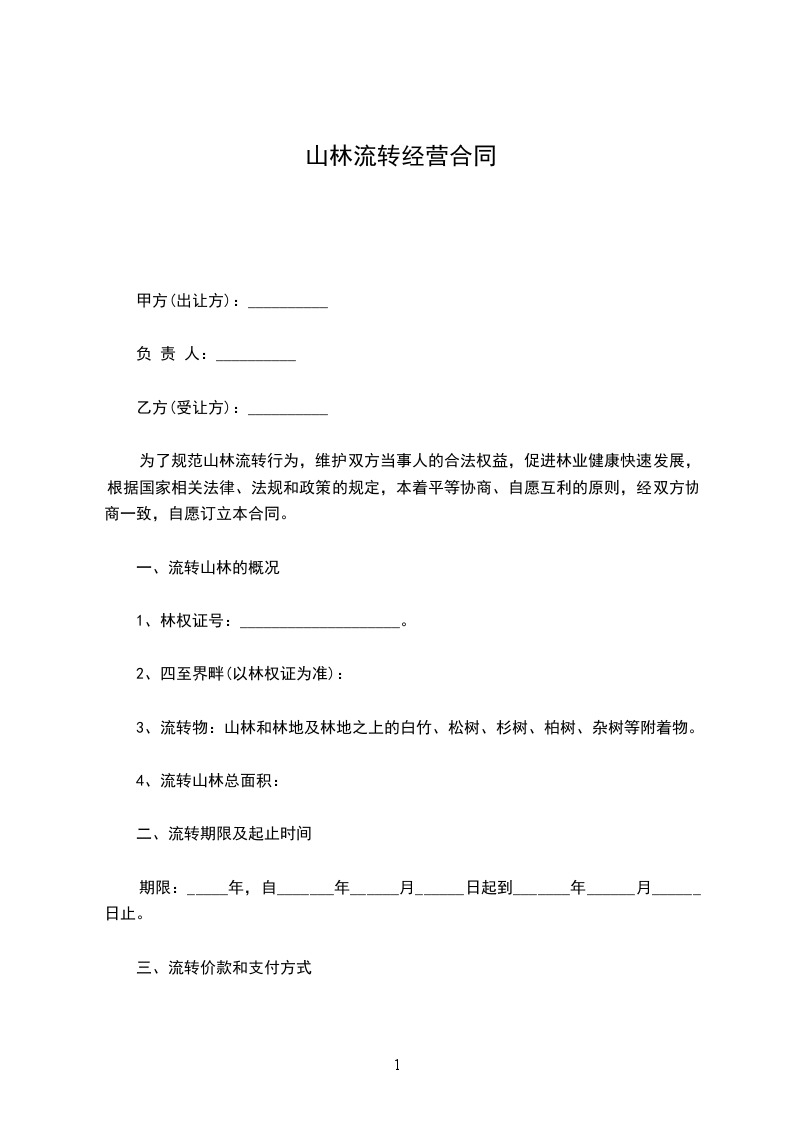 为规范山林流转行为,维护流转双方当事人合法权益,根据《森林法》和《农村土地承包法》等有关规定,本着自愿、平等、有偿的原则,甲方愿将以下山林经营权转让给乙方,现经双方协商一致,特订立此合同。