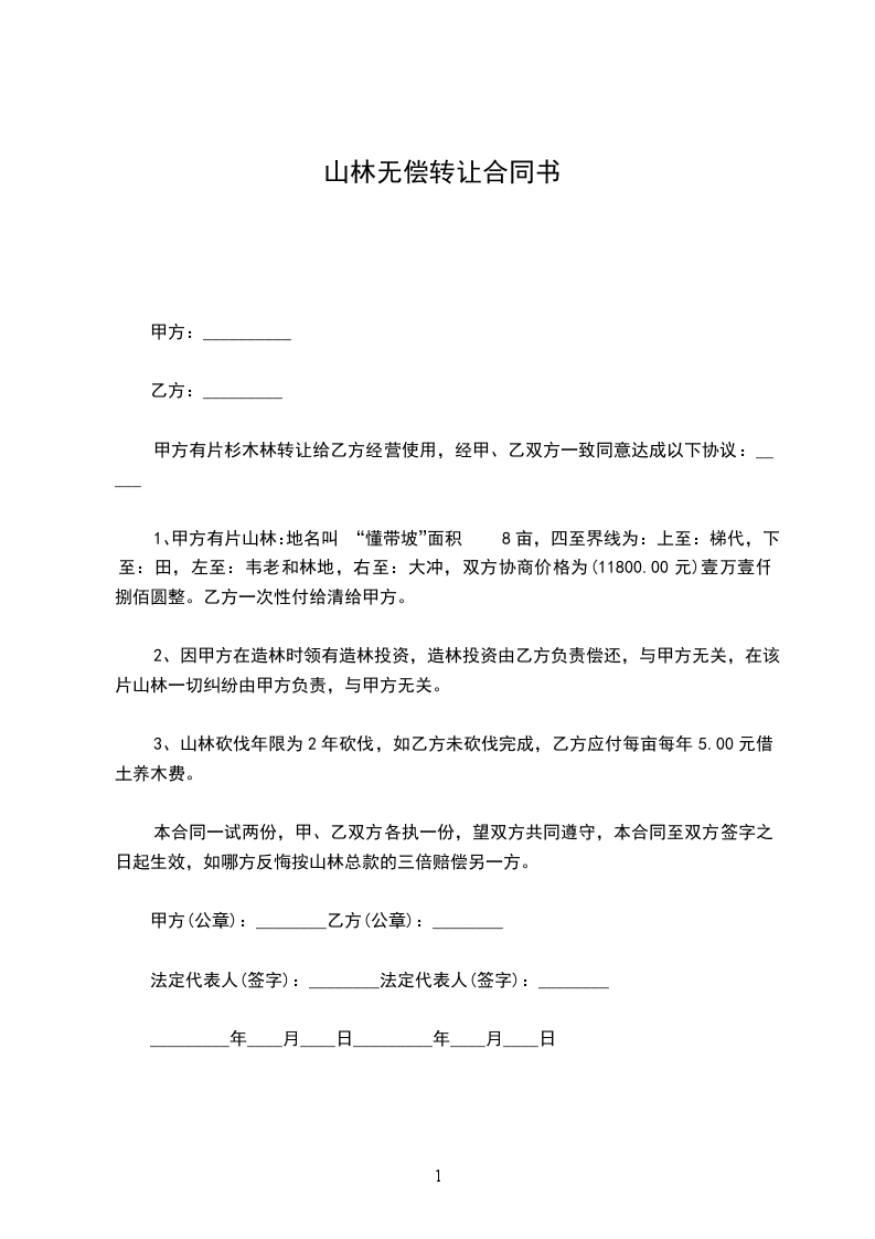 3、如果乙方没有按时支付合同款则甲方有权无偿收回该山林地并其上所有资产,已付款项不再退还。