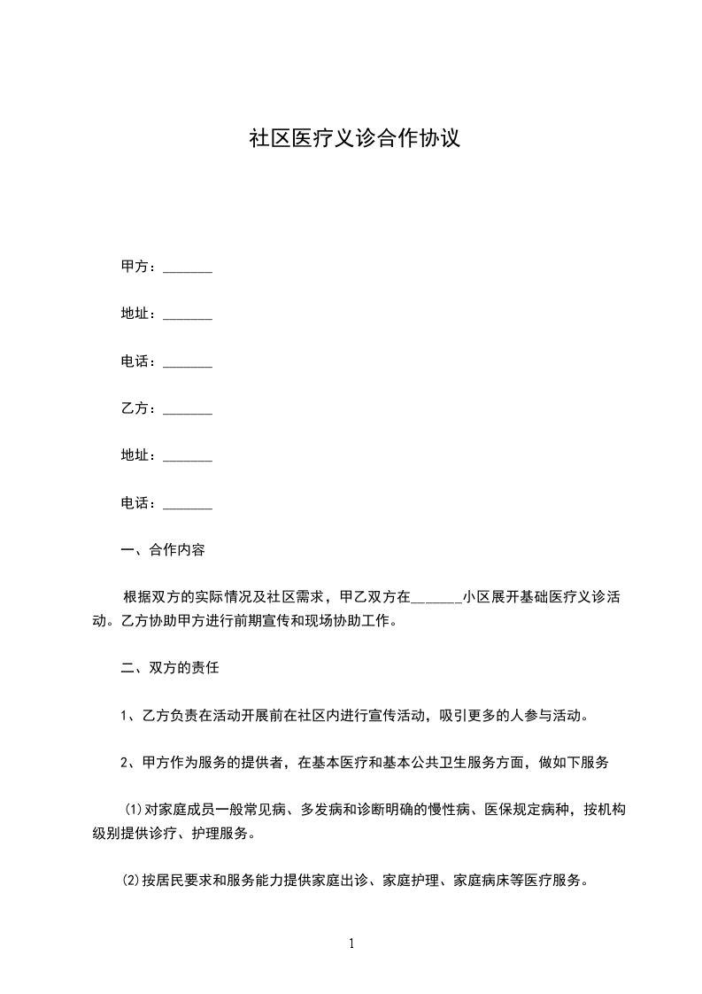 根据双方的实际情况及社区需求,甲乙双方在_______小区展开基础医疗义诊活动。乙方协助甲方进行前期宣传和现场协助工作。
