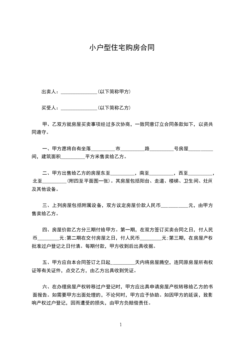 一、甲方愿将自有坐落__________市__________路__________号房屋__________间,建筑面积__________平方米售卖给乙方。