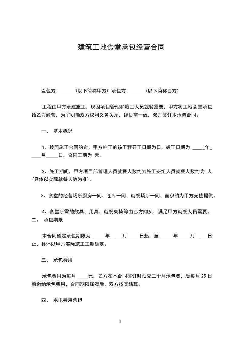 工程由甲方承建施工,现因项目管理和施工人员就餐需要,甲方将工地食堂承包给乙方经营,为了明确双方权利义务关系,经协商一致,双方签订本承包合同。