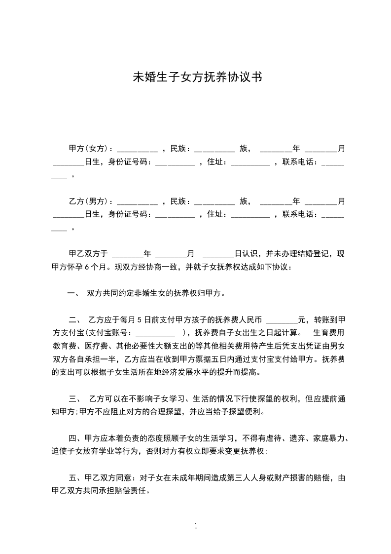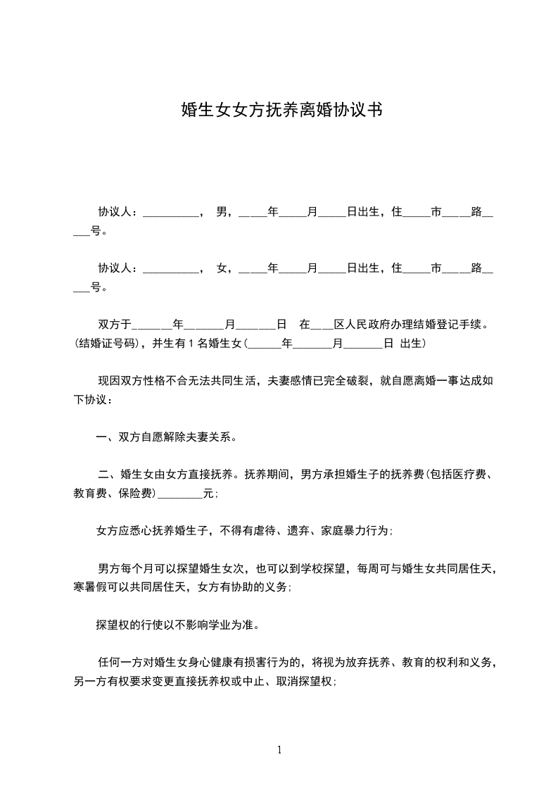 协议人:__________, 女,_____年_____月_____日出生,住_____市_____路_____号。