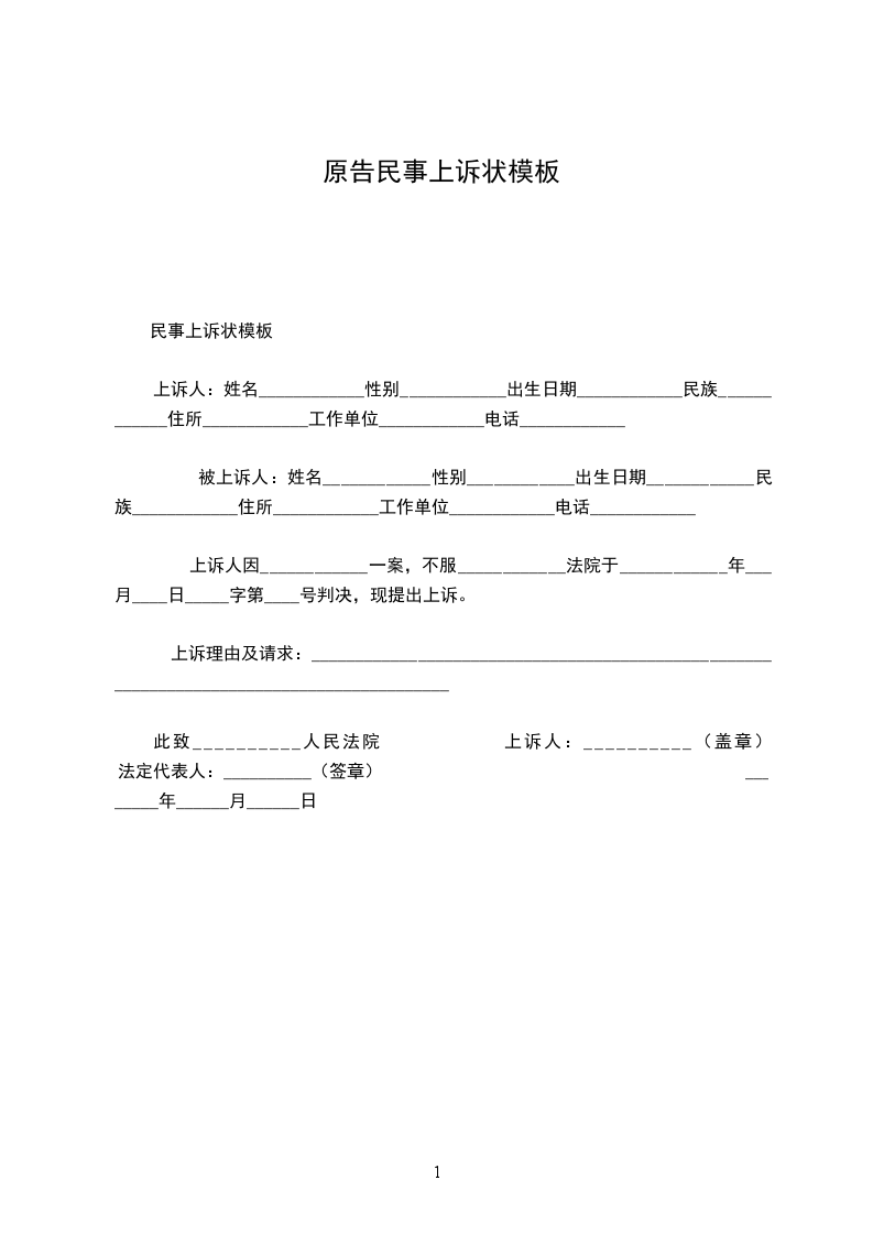 民事上诉状模板