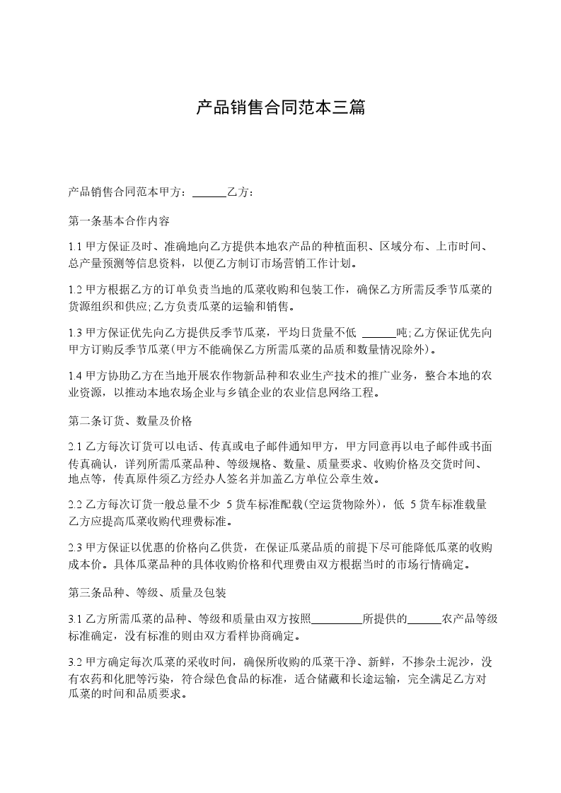 产品销售合同范本甲方:______乙方: