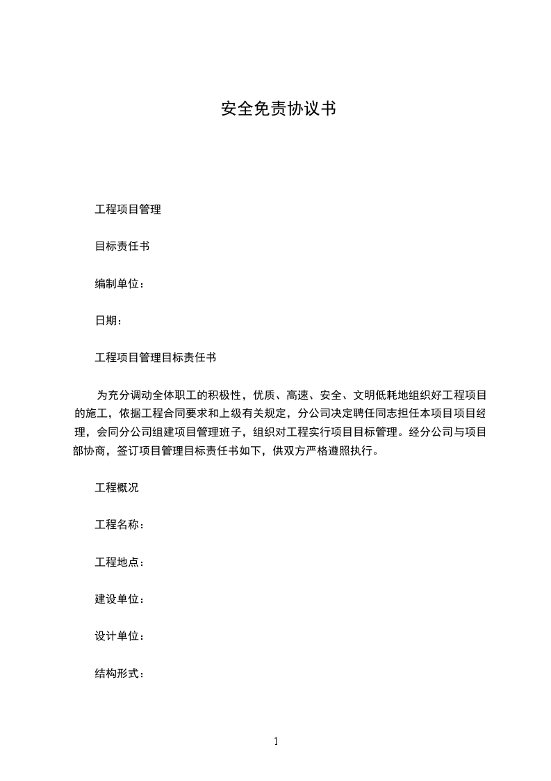 为充分调动全体职工的积极性,优质、高速、安全、文明低耗地组织好工程项目的施工,依据工程合同要求和上级有关规定,分公司决定聘任同志担任本项目项目经理,会同分公司组建项目管理班子,组织对工程实行项目目标管理。经分公司与项目部协商,签订项目管理目标责任书如下,供双方严格遵照执行。