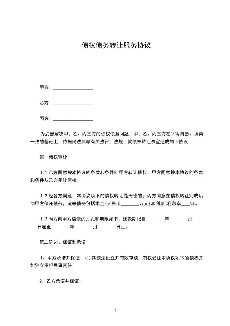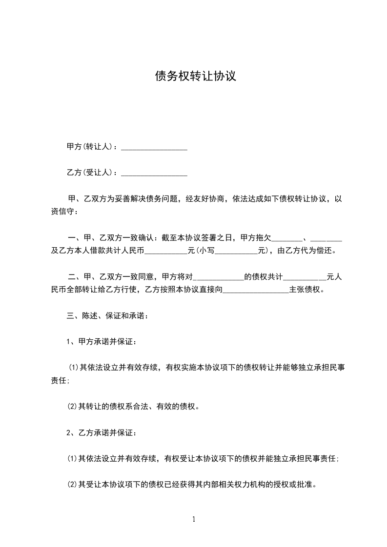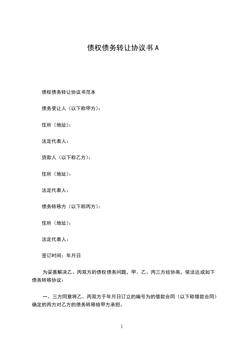 债权债务转让协议书范本