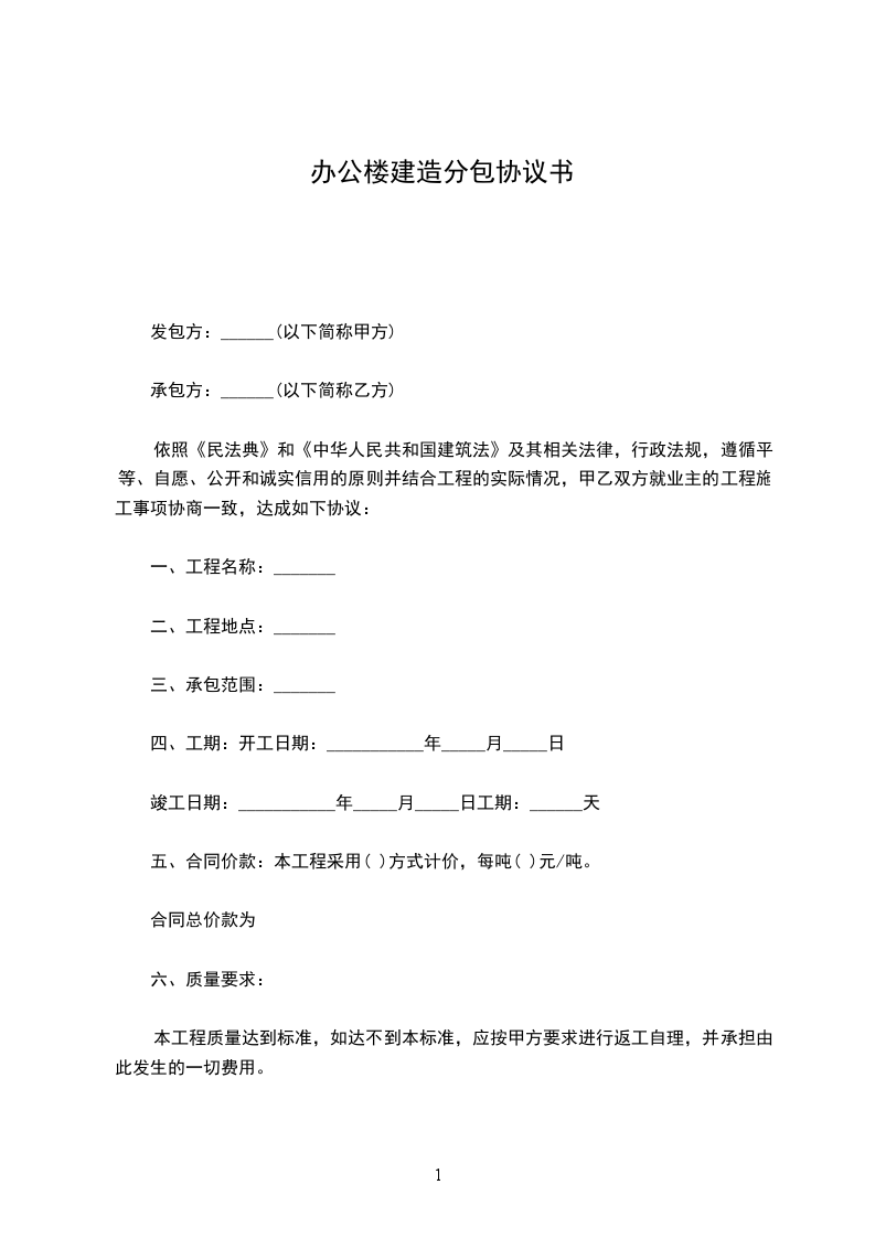 根据《中华人民共和国民法典》有关规定,遵循自愿平等公平诚信的原则,双方就搭建________办公楼房顶一事协商一致,订立本合同。