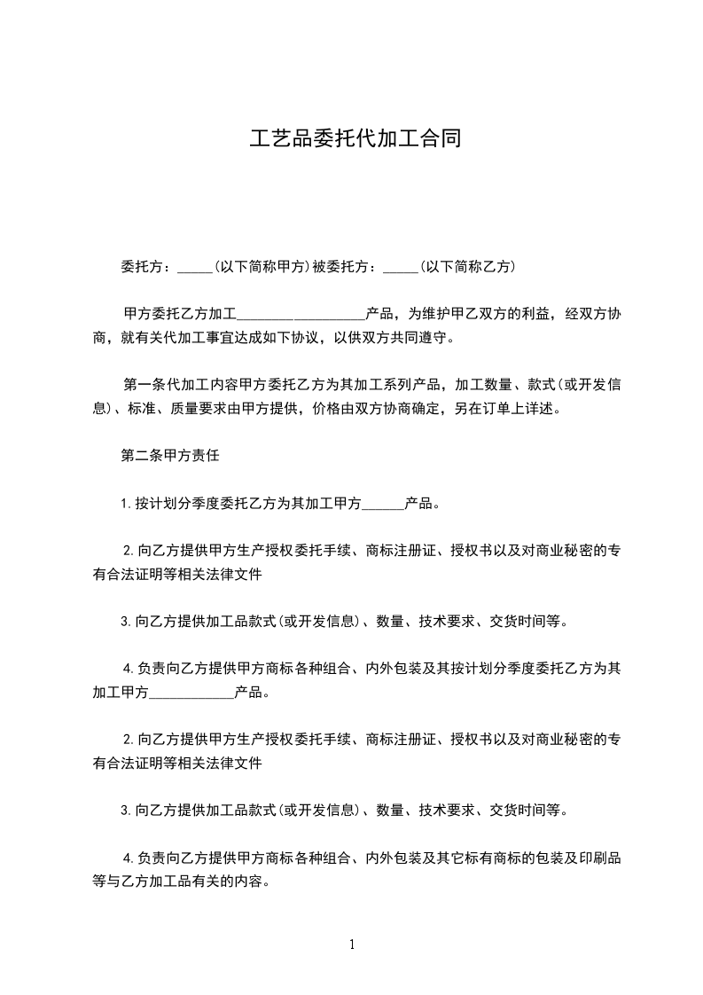 甲乙双方经过充分和友好的协商,在平等互利基础上,就甲方委托乙方加工____________,一事共同达成如下协议:
