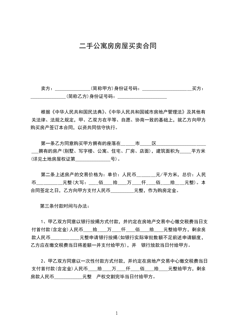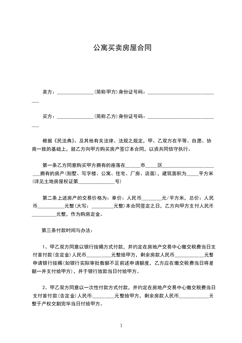 ) 合同双方当事人: 出卖人: 买房人: 根据《中华人民共和国民法典》、《中华人民共和国____市房产管理法》及其他有关法律、法规的规定,买房人和出卖人在平等、自愿、协商一致的基础上就买卖商品房达成如下协议: