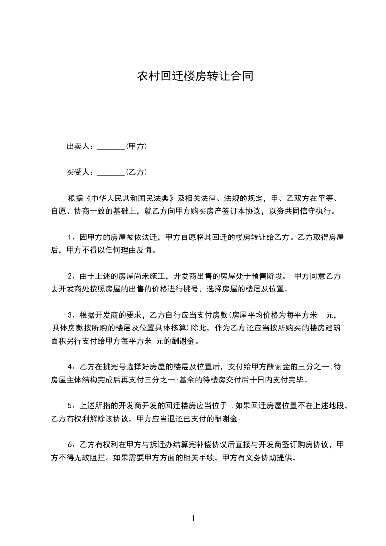 1、因甲方的房屋被依法迁,甲方自愿将其回迁的楼房转让给乙方。乙方取得房屋后,甲方不得以任何理由反悔。