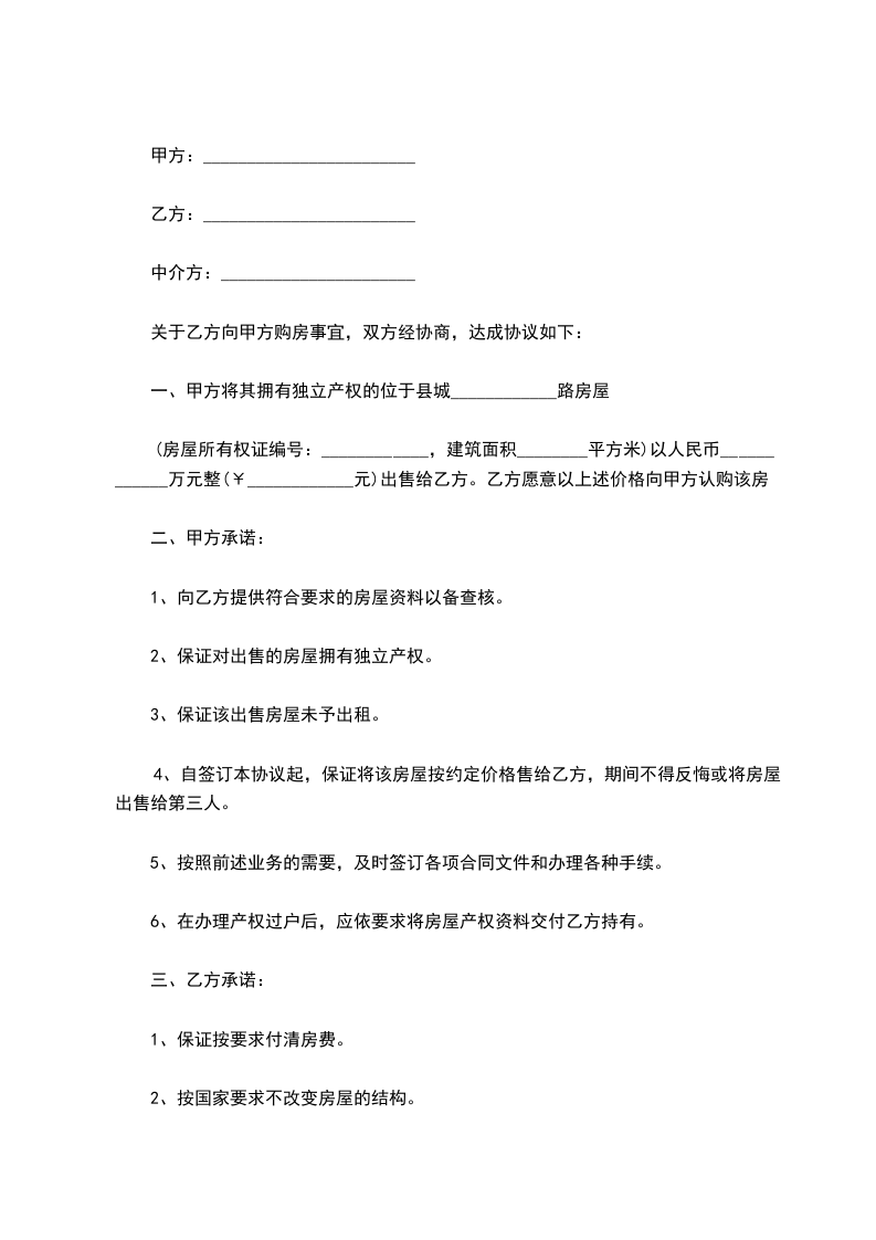 4、自签订本协议起,保证将该房屋按约定价格售给乙方,期间不得反悔或将房屋出售给第三人。