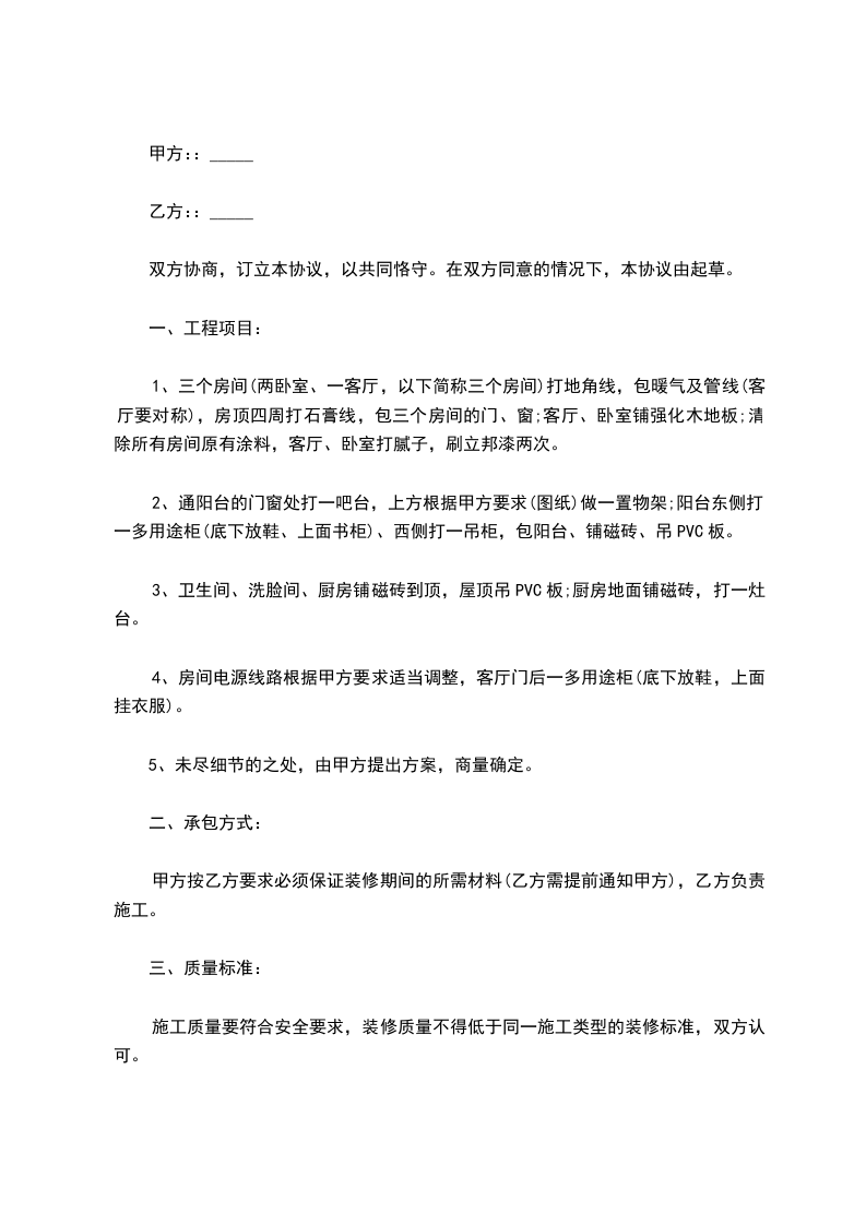 装修项目的具体要求,由甲方提出,乙方实施。本协议未尽事宜,由双方协商解决。本协议自双方签字之日起生效。