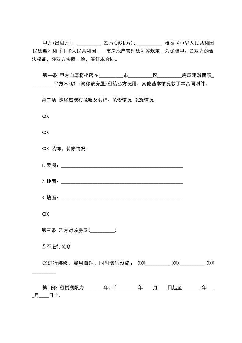 二、租赁期限:,即________年____月____日至________年____月____日。