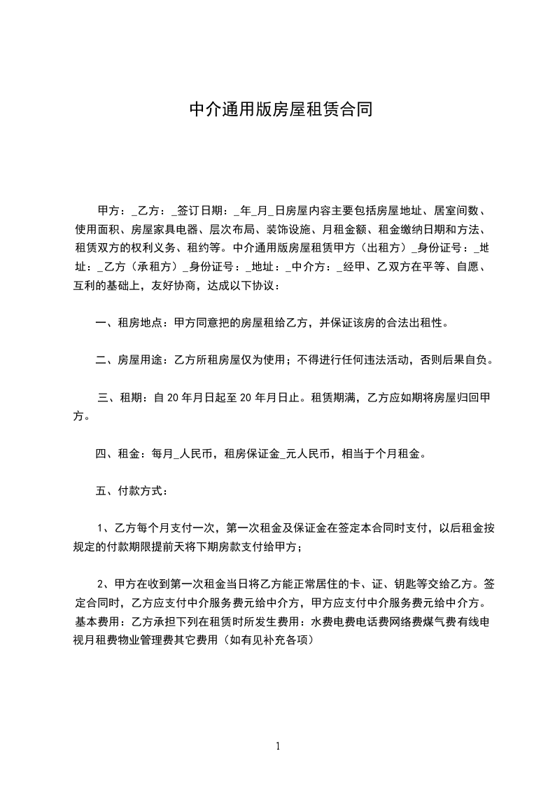 一、甲、乙双方同意,提前终止双方于________年____月____日签订的《房屋租赁合同》。