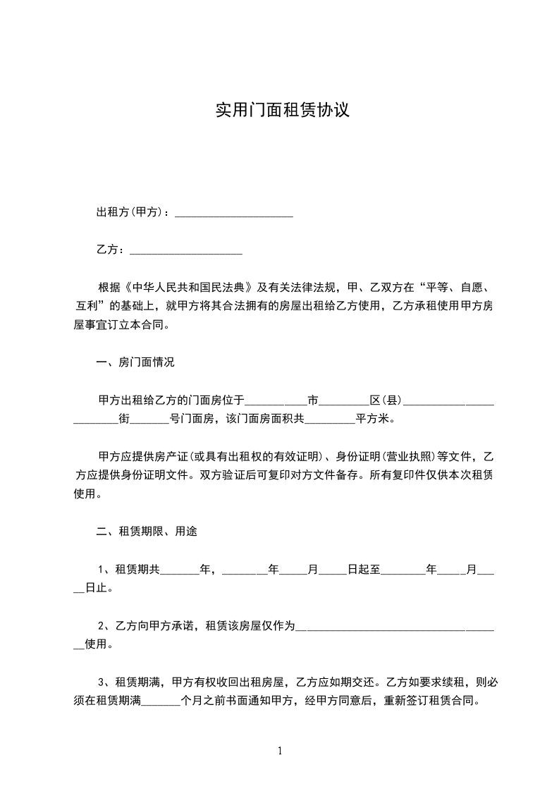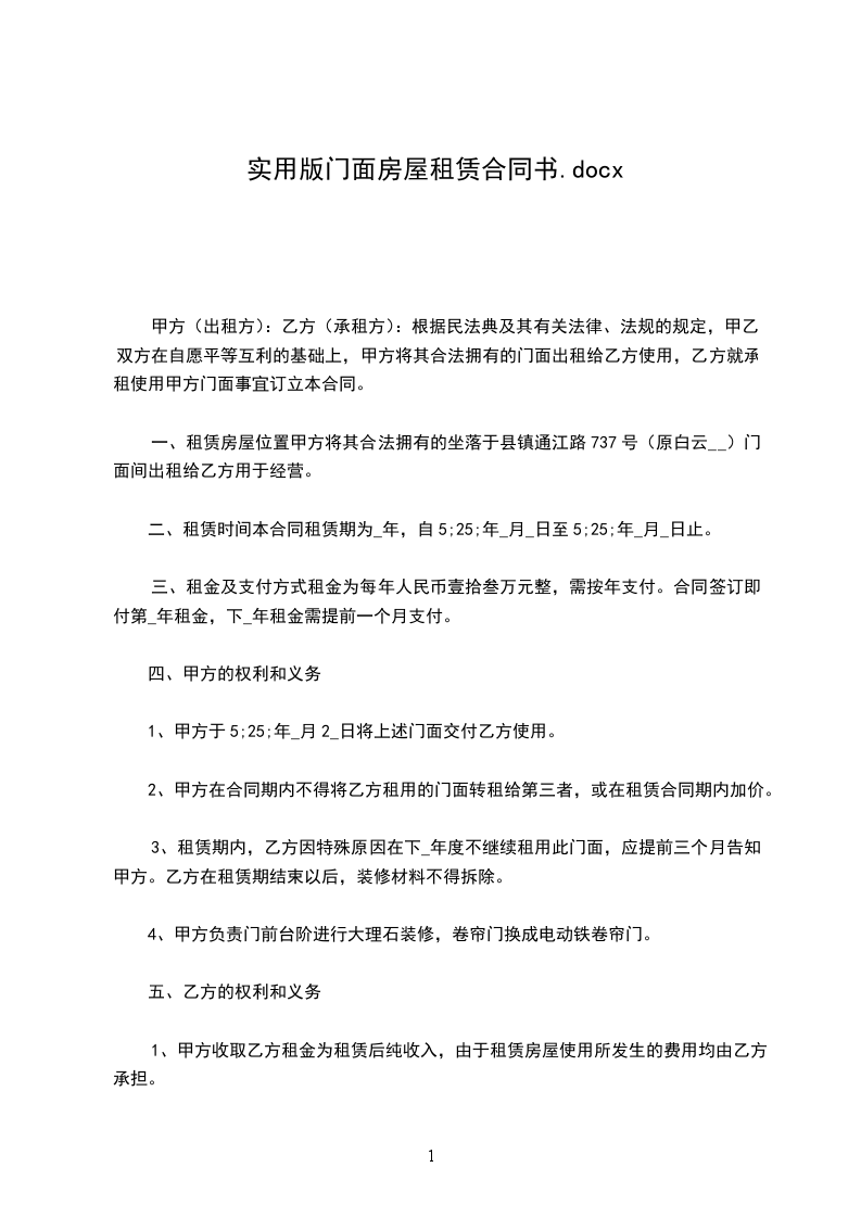 第一条 房屋坐落地址 甲方出租的商铺坐落地址:______号,建筑面积______平方米。